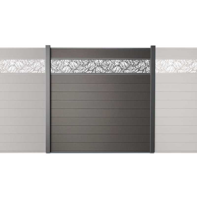 Un kit clôture composite à poser sur platines avec lame décorative Easy Leaf est composé de :