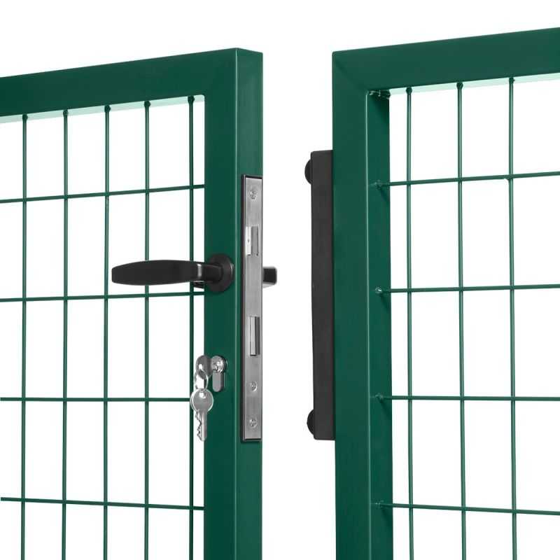 Prêt à être monté, le portail grillagé Easy Home est disponible en plusieurs couleurs et hauteurs pour s'adapter parfaitement à votre clôture en panneau rigide.